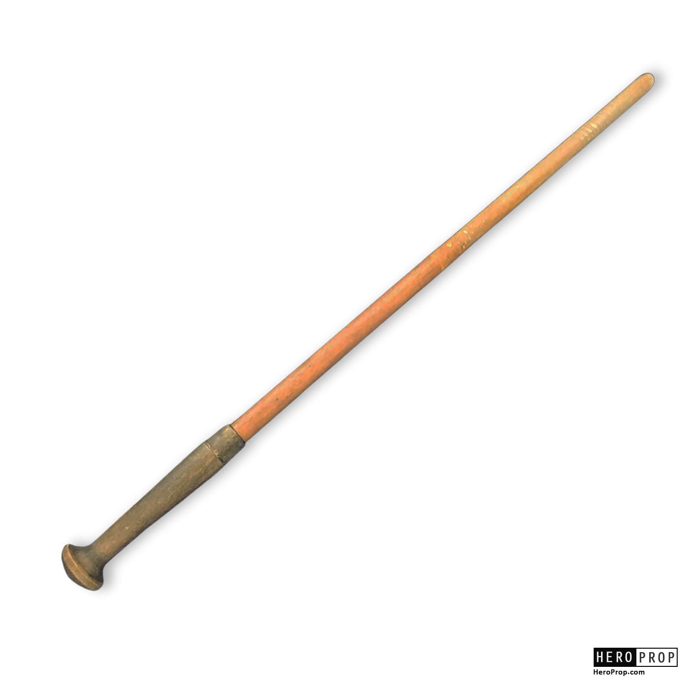 Wand like these were used in the background of the film by the students at Hogwarts. This piece is made of wood and cylindrical in design. Light brown in color the wand features a prominent handle section. This piece shows slight wear in the form of scrapes and scratches, measures around 12″ in length, and remains in excellent, production used condition.