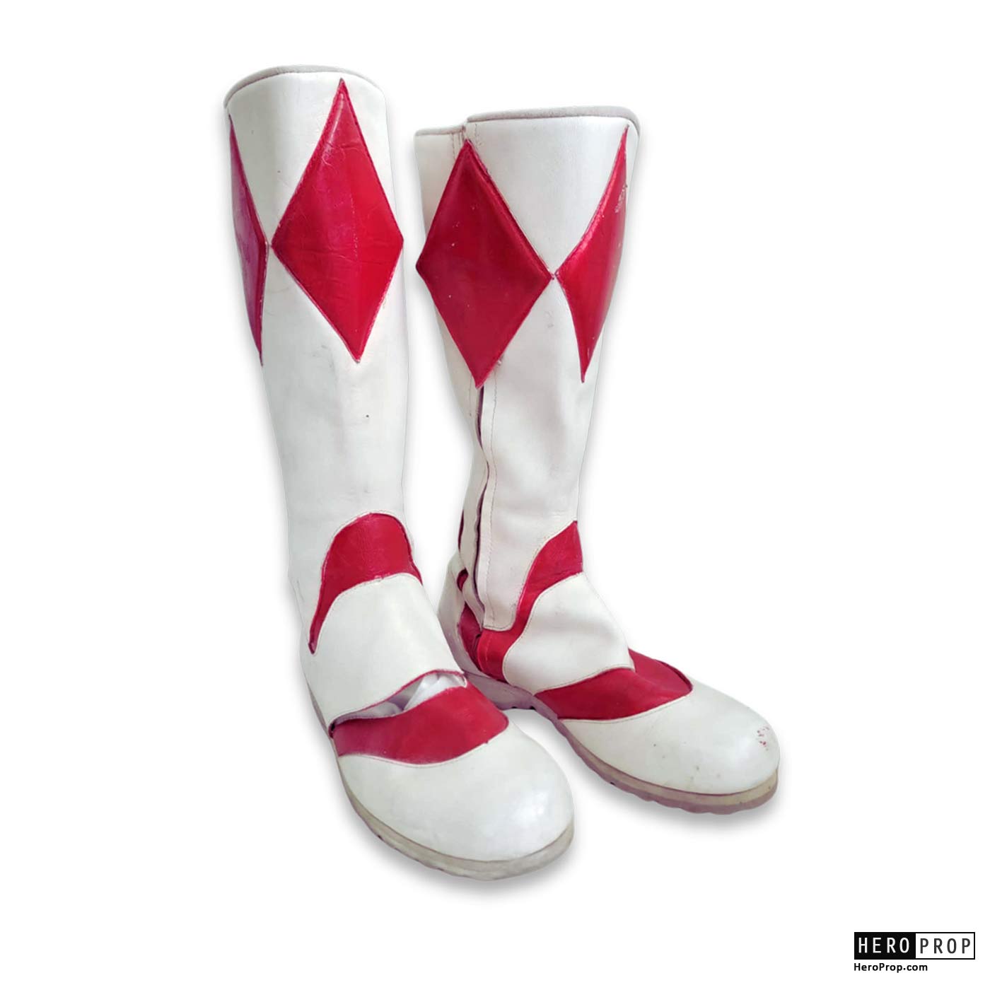 Hero Red Ranger boots from the Mighty Morphin Power Rangers: The Movie. After a construction crew accidentally cracks open a gigantic egg that has imprisoned evil maniac Ivan Ooze (Paul Freeman) for centuries, the Mighty Morphin Power Rangers prepare to face their most formidable foe yet. The vengeful Ooze kills their elderly mentor, Zordon (Nicholas Bell), and with him the source of the Rangers’ power. Stunned by Zordon’s death, the Rangers struggle to contain Ooze without the help of the Zords, the giant mechanical robots they have grown to depend upon in battle.