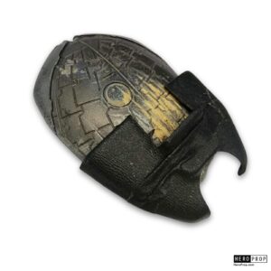 Made of resin, this spyder is painted metallic silver and shows grid-like panels cut into the surface along with a static button. The spyder fits within a belt clip for fastening to the Precrime agent’s thigh holster. Showing minor wear due to production use, the lot remains in very fine condition. Dimensions: 9 cm x 7 cm x 3 cm (3 1/2” x 2 3/4” x 1 1/4”)
