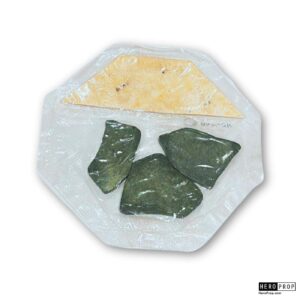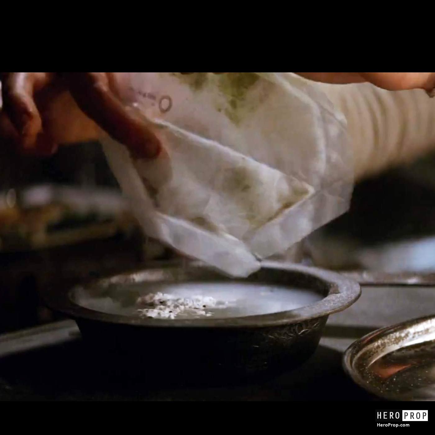 A prop ‘ration pack” as used by Rey (Daisy Ridley) in J.J. Abrams’ Star Wars: The Force Awakens. Ration packs contained food or nutrients to consume when other sources were scarce.